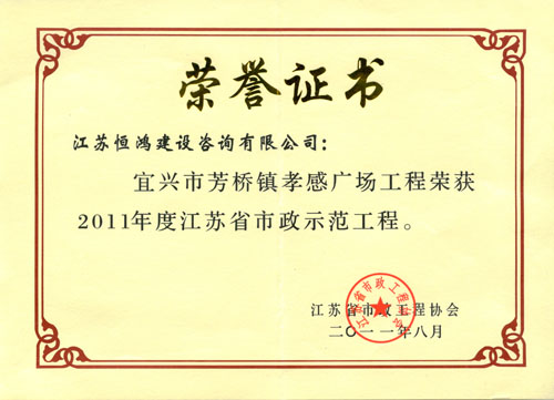 2011年“芳橋鎮(zhèn)孝感廣場(chǎng)”江蘇省市政示范工程