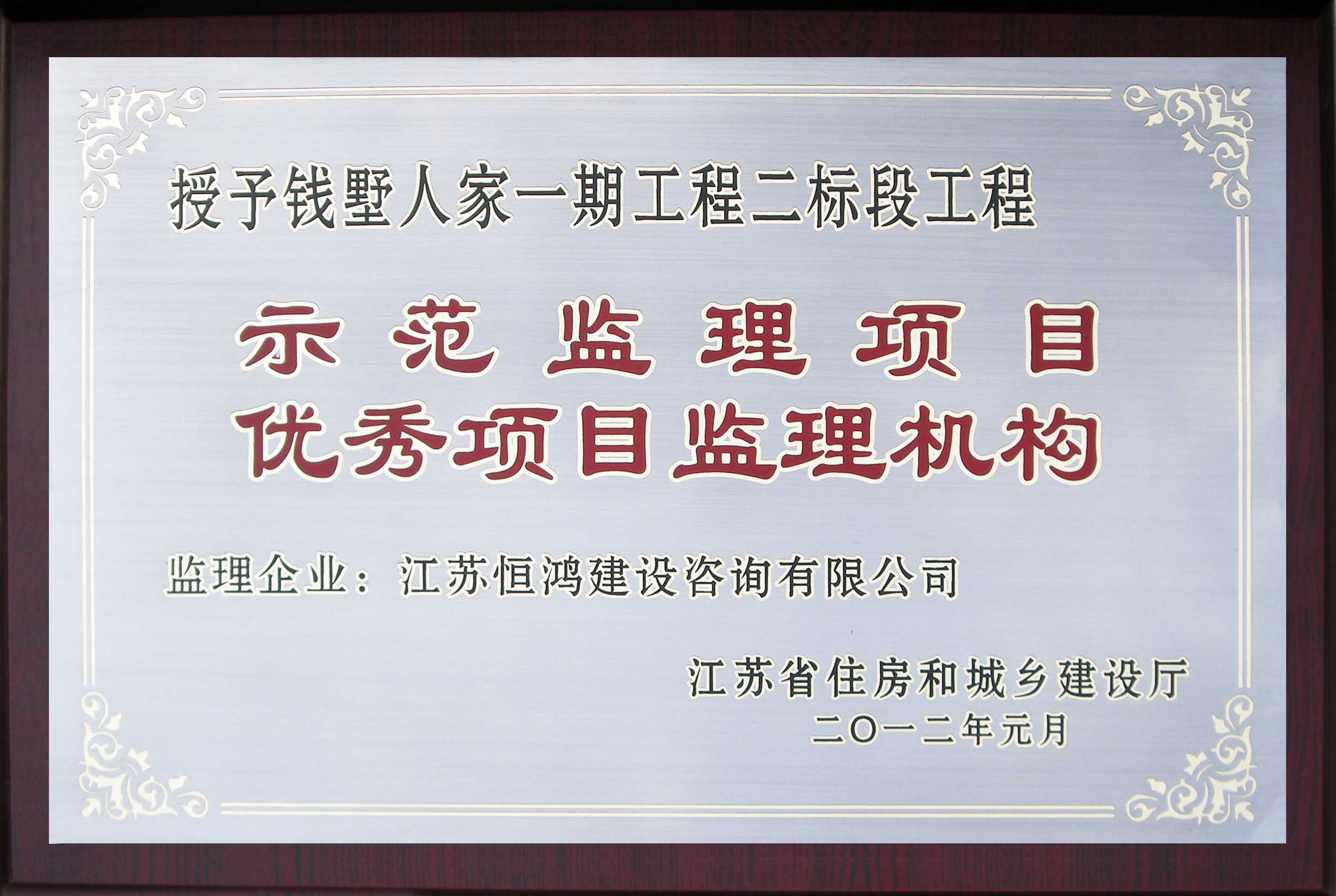 2011年“錢墅人家一期工程二標(biāo)段”江蘇省示范監(jiān)理項(xiàng)目