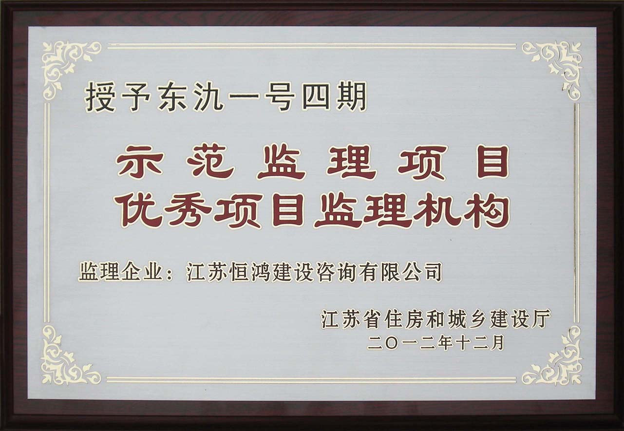 2012年“東氿一號四期”江蘇省示范監(jiān)理項(xiàng)目