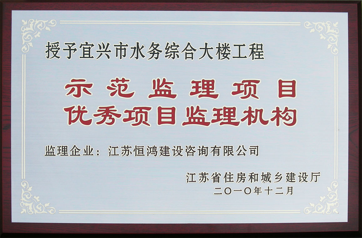 2010年“水務(wù)綜合大樓”江蘇省示范監(jiān)理項目