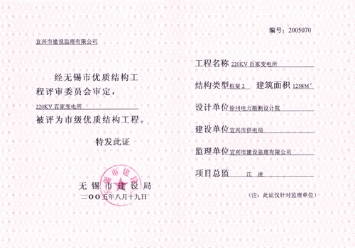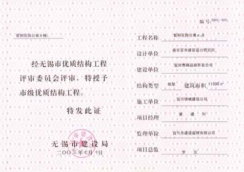 2002年“農(nóng)行宜興支行辦公樓”揚(yáng)子杯優(yōu)質(zhì)工程獎(jiǎng)