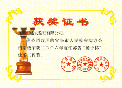 2006年“檢察院辦公樓”揚(yáng)子杯優(yōu)質(zhì)工程獎(jiǎng)