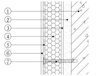 圖1.1 泡沫玻璃保溫板外墻外保溫系統(tǒng)基本構(gòu)造 1-基層墻體;2-防水砂漿找平層;3-粘結(jié)層;4-泡沫玻璃保溫板;5-抹面層(內(nèi)置玻纖網(wǎng)布);6-飾面層(涂料、柔性面磚等);7-錨栓 1.2 泡沫玻璃保溫板外墻外保溫系統(tǒng)性能 泡沫玻璃保溫板外墻外保溫系統(tǒng)性能應(yīng)符合表1.2要求。 表1.2 泡沫玻璃保溫板外墻外保溫系統(tǒng)性能